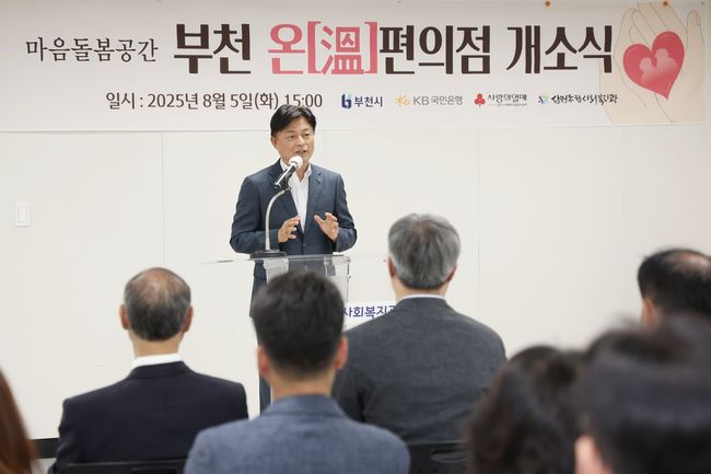 조용익 부천시장이 지난달 5일 `부천 온(溫)편의점` 개소식에서 인사말을 전하고 있다.