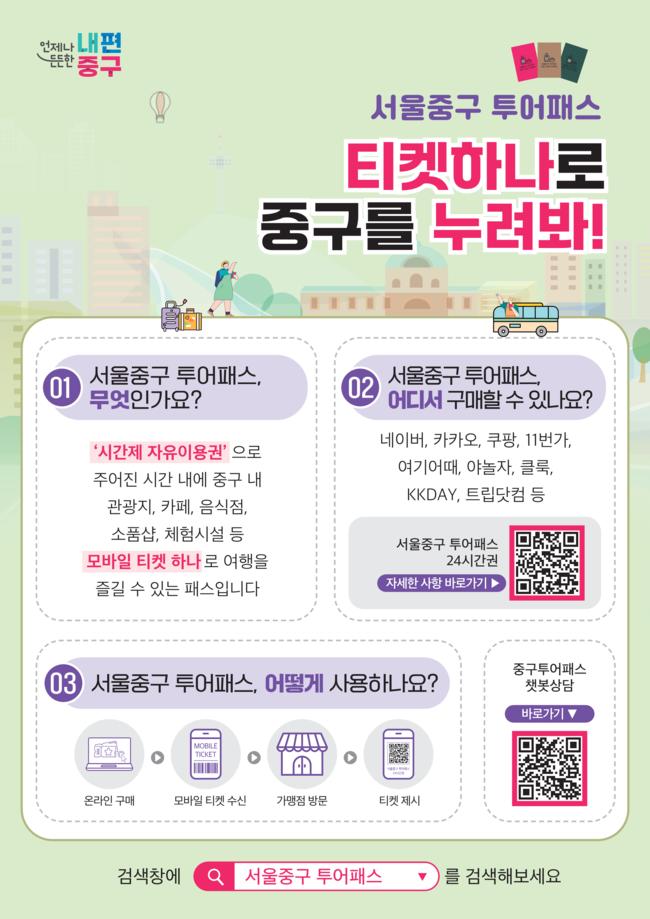 구는 투어패스의 인기에 힘입어 ‘서울중구 전통시장상권발전소’와 손잡고 9월부터 11월까지 3개월간 전통시장 이벤트를 추진한다.