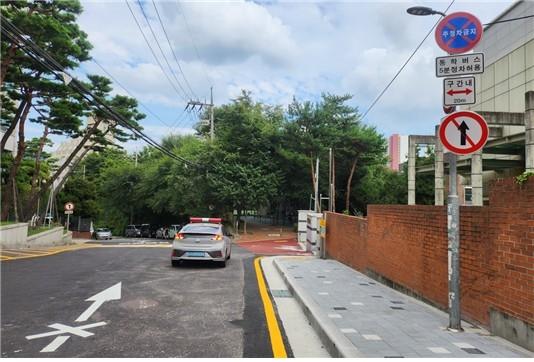 충신유치원은 승·하차 구간과 횡단보도 대기 공간에 디자인 보도블럭을 설치해 학부모 차량 혼잡을 줄이고, 보광초에서 해제된 교통단속용 카메라를 이전해 실효성을 강화한다.