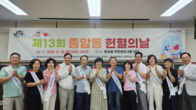 성북구 종암동주민자치회가 종암동주민센터에서 제13회 헌혈의 날 행사를 열고 주민 참여를 통해 생명 나눔 문화를 확산했다.