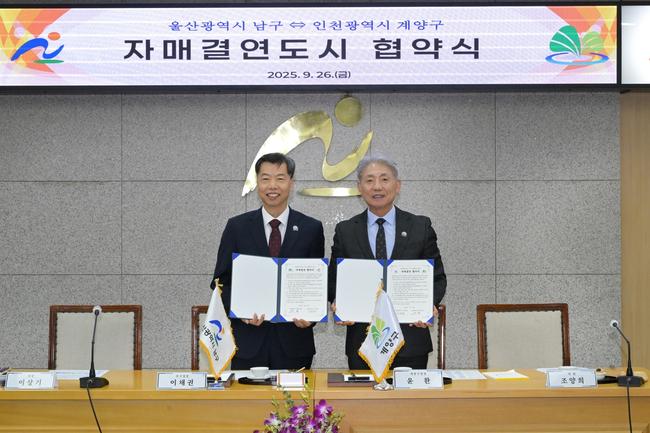 인천광역시 계양구(구청장 윤환)는 9월 25부터 26일까지 1박 2일의 일정으로 울산광역시 남구를 방문해 두 도시 간 자매결연 협약을 체결했다고 밝혔다.
