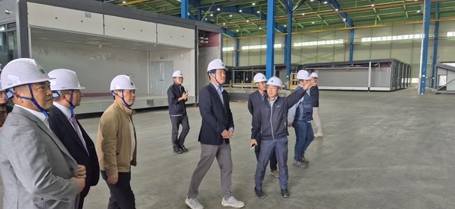 강범석 인천 서구청장, 검단구 임시청사 모듈러 공장 방문