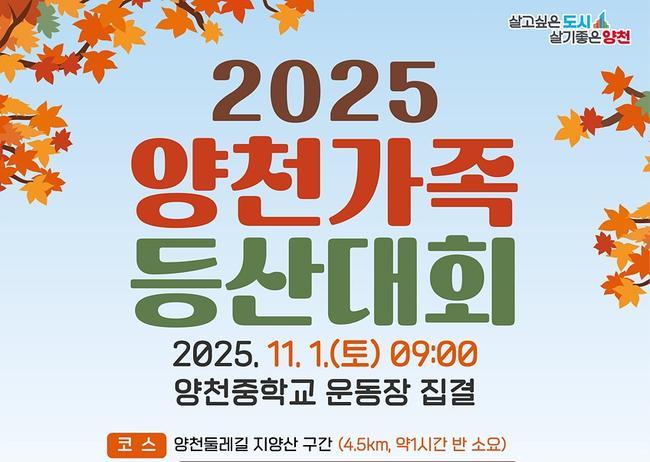 양천구(구청장 이기재)는 구민의 건강 증진과 건전한 여가 활동을 지원하기 위해 11월 1일 지양산에서 `2025 양천가족 등산대회`를 개최한다고 밝혔다.
