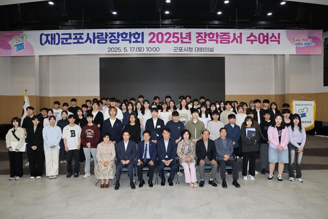 지난 5월 17일 토요일 오전 10시 군포시청 대회의실에서 (재)군포사랑장학회 2025년 장학증서 수여식이 진행됐다.