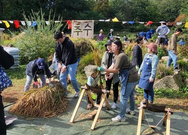 수확된 볍씨는 가을 햇살에 자연 건조된 후 일부는 `토종쌀 밥 맛보기` 체험에 활용되고, 나머지는 내년 농사를 위한 종자용으로 보존될 예정이다.