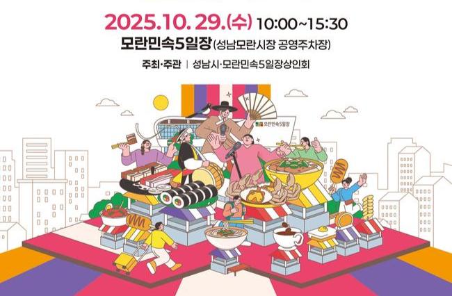 성남시(시장 신상진)는 오는 10월 29일 오전 10시부터 오후 3시 30분까지 모란민속5일장(중원구 둔촌대로 68)에서 `2025 모두모여모란` 축제를 연다.