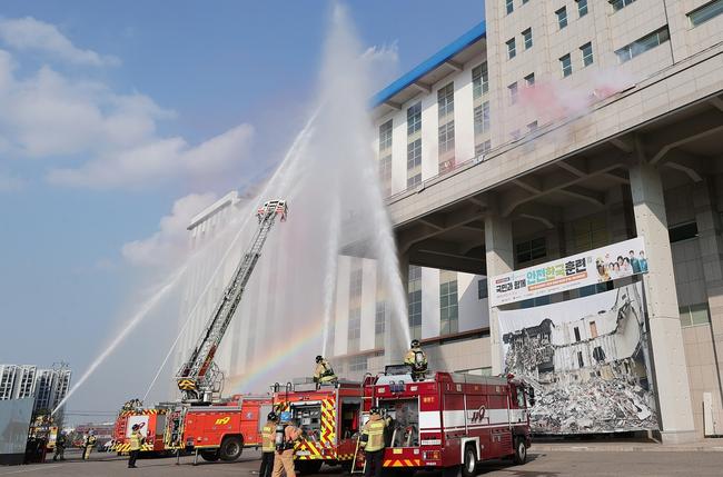 훈련은 지난 경주·포항지진의 규모를 상정해 진행됐으며, 서구 청라 전기차 화재 이후 사회 안전사고 이슈로 주목받은 전기차 화재 대응 훈련도 함께 실시됐다.
