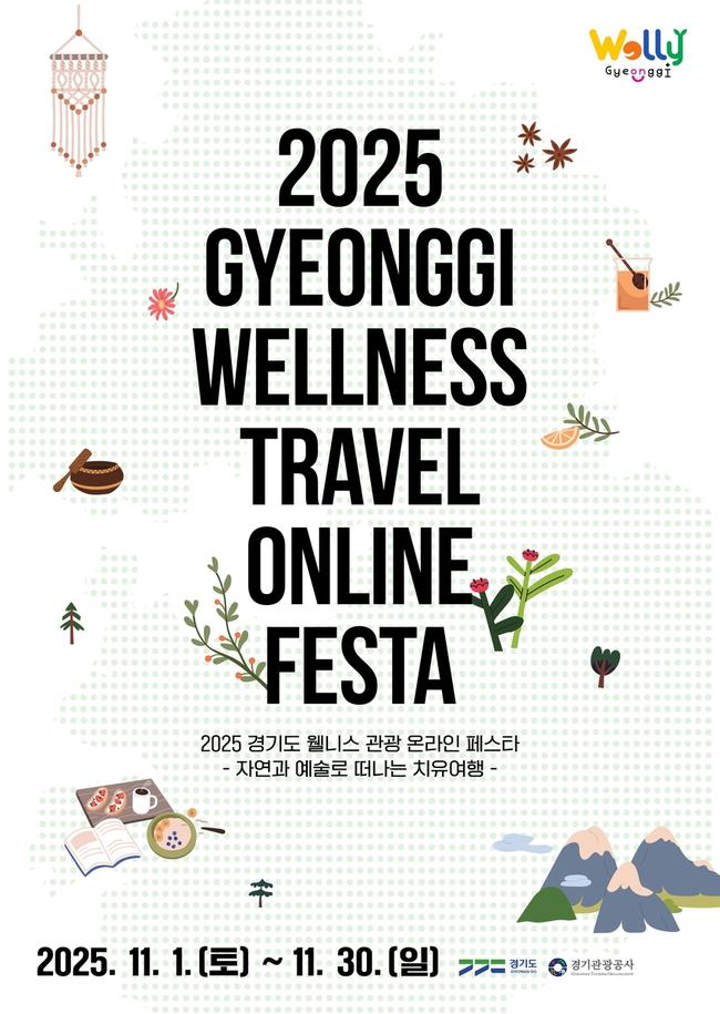 경기도와 경기관광공사가 11월 1일부터 30일까지 한 달간 도내 웰니스 관광지 9곳에서 최대 6만 원의 할인 혜택을 받을 수 있는 `2025 경기도 웰니스 관광 온라인 페스타`를 진행한다.