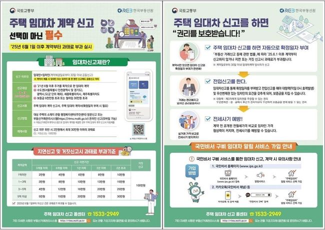 신고 기한을 넘길 경우 계약 금액과 기간에 따라 최소 2만 원에서 최대 30만 원의 과태료가 부과되며, 거짓 신고 시에는 최대 100만 원까지 과태료가 부과된다. 신고는 원칙적으로 임대인과 임차인이 공동으로 해야 하나, 서명된 계약서를 제출하면 일방의 신고도 공동 신고로 인정된다.
