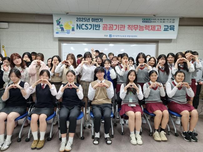광주시교육청(교육감 이정선)은 지난 10월 28일부터 11월 7일까지 취업 지원센터에서 공공기관 취업을 희망하는 직업계고 학생을 대상으로 `2025년 하반기 NCS 기반 공공기관 맞춤형 직무능력제고 교육`을 운영했다.