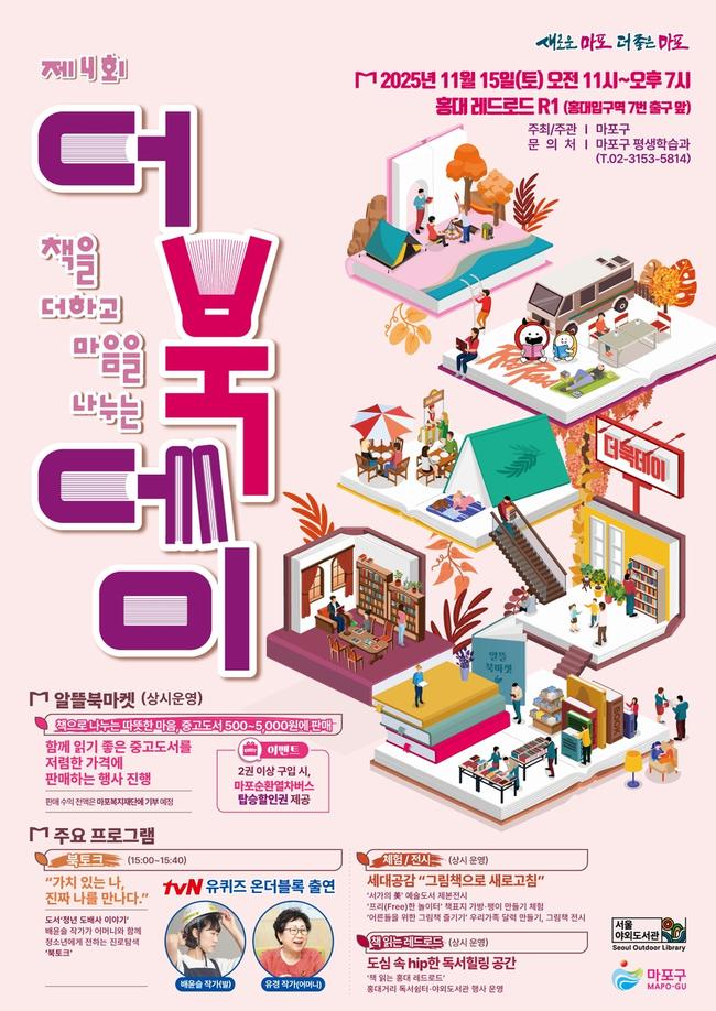 마포구(구청장 박강수)는 오는 11월 15일(토) 오전 11시부터 오후 7시까지 레드로드 R1 일대에서 `제4회 더북데이` 행사를 개최한다.