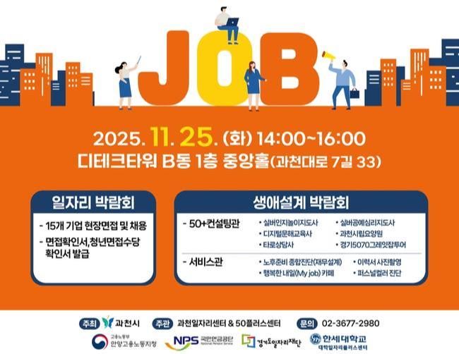 이번 행사는 과천시 일자리센터와 50플러스센터가 주관하며, 15개 기업의 현장 면접부터 50+ 직무 컨설팅, 재무설계, 퍼스널컬러 진단 등 다양한 생애설계 프로그램을 한 자리에서 제공한다.