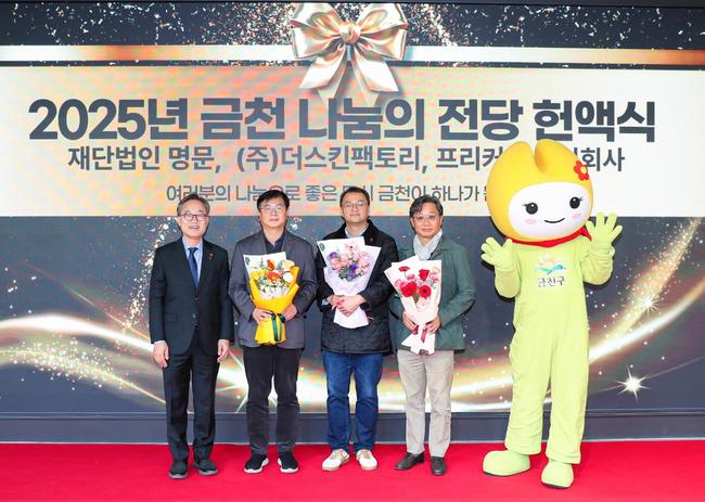 이날 금천구청 1층 `나눔의 전당`에는 지역사회 기부 문화 확산에 기여한 ▲ 재단법인 명문 ▲ ㈜더스킨팩토리 ▲ 프리커스 주식회사 총 3곳이 신규로 등재됐다.