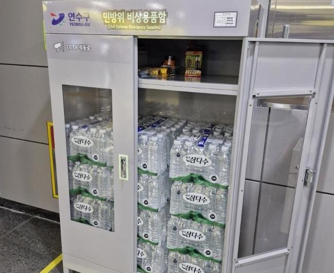 연수구(구청장 이재호)는 인천시 자치구 가운데 최초로 지역 내 민방위 비상대피시설 10곳에 대형 비상용품함을 시범 설치했다.