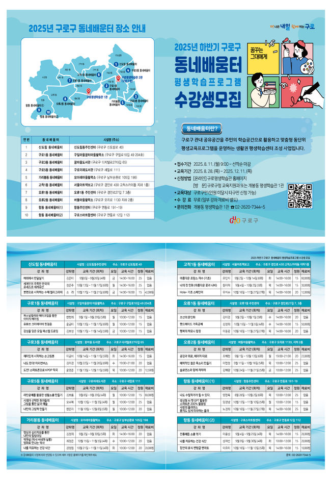 구로구, ‘2025년 하반기 동네배움터’ 수강생 선착순 모집