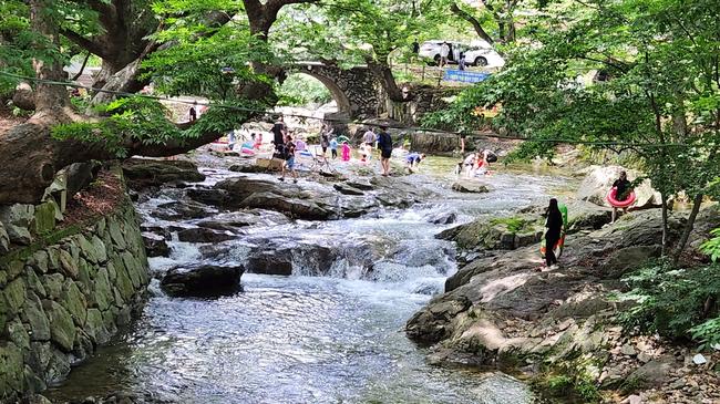 특히 용오름계곡은 뜨거운 햇빛을 가려주는 풍성한 나무 그늘 아래에서 시원하게 물놀이를 즐길 수 있는 최적의 장소다. 계곡을 가로지르는 아름다운 무지개다리는 방문객들에게 잊지 못할 추억을 선사한다.