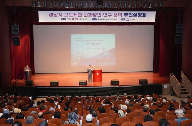 성남시(시장 신상진)는 27일 오후 2시 시청 온누리에서 `제3차 고도 제한 완화방안 연구 및 자문 용역`과 관련한 주민설명회를 열었다.